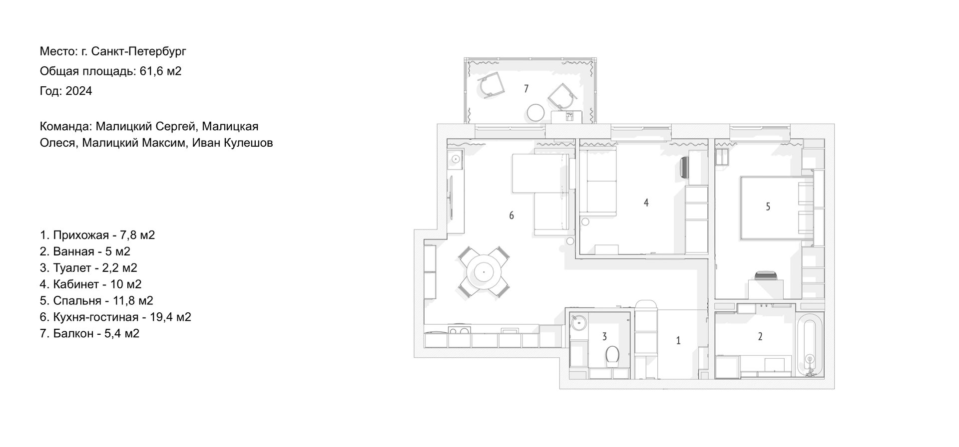Квартира для молодой семьи. Лаконичный дизайн в светлых оттенках, акцентными элементами и продуманной мебелью по индивидуальным чертежам нашего бюро. Исходная планировка в ЖК Магнифика хорошо продумана и нам потребовалось лишь правильно использовать имеющуюся площадь под конкретные желания заказчика. В данном проекте мы обошлись без перепланировки.